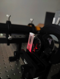 自搭建的小角激光光散射平台,可以表征样品地微米级长程有序结构。